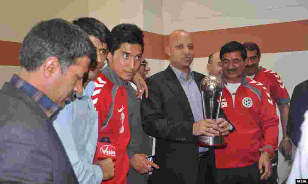 د افغانستان د فوټبال ملي ټیم چې د جنوبي اسیا جام اتلولي یې ګټلې، د کابل هوايي ډګر ته راورسید. د دوی هرکلي ته ولسمشر حامد کرزی هم هوايي ډګر ته ورغلی و، چې له هغه ځایه بیا د شانګهای په غونډه کې ګډون لپاره قرغزستان ته ځي. د فوټبال د ملي ټیم د غړو هرکلي ته د کابینې او ملي شورا یو شمېر غړي او عام خلک هم ورغلي دي. ولسمشر حامد کرزي تر دې مخکې هم د جنوبي اسیا د جام مبارکي د فوټبال ټیم او ټولو خلکو ته ویلې وه. هغه په یوه ویډیويي پیغام کې وویل چې دا کامیابي ښيي چې د افغانستان د پرمختګ مخه هیڅوک نشي نیولای. د تیرې چارشنبې په شپه افغانستان د جنوبي اسیا د جام په پایلوبه کې هند ته دوه په صفر ماتې ورکړه. له دې بریا وروسته په پلازمینې کابل او لویو ښارونو کې خلک سړکونو او کوڅو ته راووتل او په جشنونه یې وکړل.