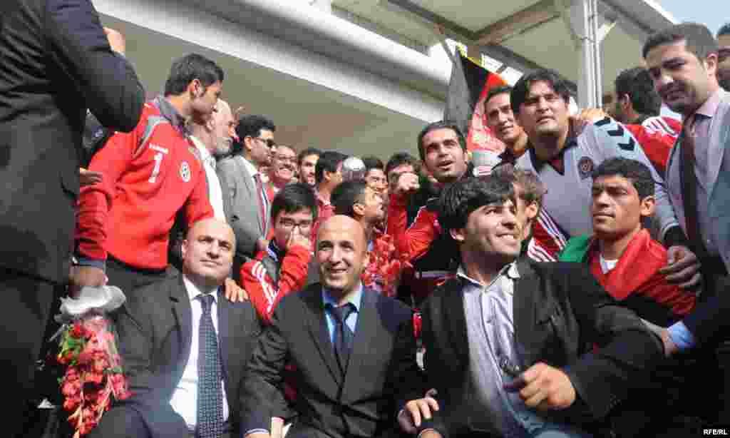 د افغانستان د فوټبال ملي ټیم چې د جنوبي اسیا جام اتلولي یې ګټلې، د کابل هوايي ډګر ته راورسید. د دوی هرکلي ته ولسمشر حامد کرزی هم هوايي ډګر ته ورغلی و، چې له هغه ځایه بیا د شانګهای په غونډه کې ګډون لپاره قرغزستان ته ځي. د فوټبال د ملي ټیم د غړو هرکلي ته د کابینې او ملي شورا یو شمېر غړي او عام خلک هم ورغلي دي. ولسمشر حامد کرزي تر دې مخکې هم د جنوبي اسیا د جام مبارکي د فوټبال ټیم او ټولو خلکو ته ویلې وه. هغه په یوه ویډیويي پیغام کې وویل چې دا کامیابي ښيي چې د افغانستان د پرمختګ مخه هیڅوک نشي نیولای. د تیرې چارشنبې په شپه افغانستان د جنوبي اسیا د جام په پایلوبه کې هند ته دوه په صفر ماتې ورکړه. له دې بریا وروسته په پلازمینې کابل او لویو ښارونو کې خلک سړکونو او کوڅو ته راووتل او په جشنونه یې وکړل.