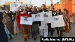 مظاهرې ته د سیاسي او ټولنیزو چارو فعالې ثنا اعجاز وویل حکومت باید د ټولو لادرکه کړل شوو کسانو د راخوشېکولو لپاره کوټلي ګامونه پورته کړي.