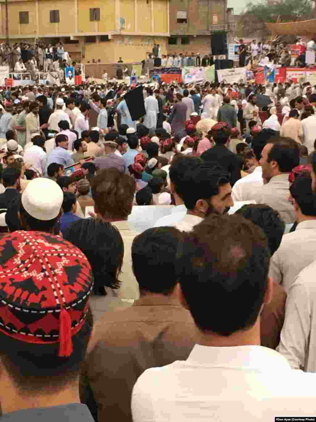 دا انځوریزه ګالري وګورئ. انځورونه په جلسه کې موجود مدني فعال خان ایاز استولي دي.